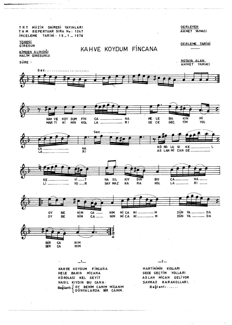 Kahve koydum fincana (Rep.No: 1247)