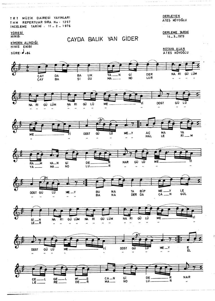 Bu türkünün notasında, sözlerinde veya örnek icrasında bir eksiklik yahut yanlışlık tespit ederseniz, e-mail ile veya WhatsApp hattından bildirim yaparak katkıda bulunabilirsiniz.