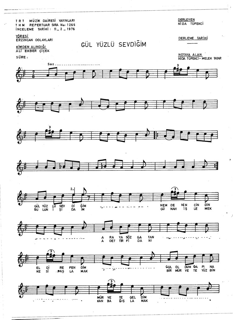Gül yüzlü sevdiğim nemden incindin (Rep.No: 1265)