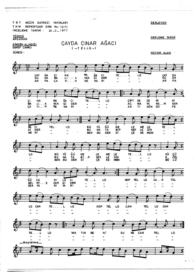 Bu türkünün notasında, sözlerinde veya örnek icrasında bir eksiklik yahut yanlışlık tespit ederseniz, e-mail ile veya WhatsApp hattından bildirim yaparak katkıda bulunabilirsiniz.