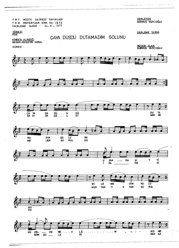 Çaya düştü tutamadım kolunu (Rep.No: 1272)
