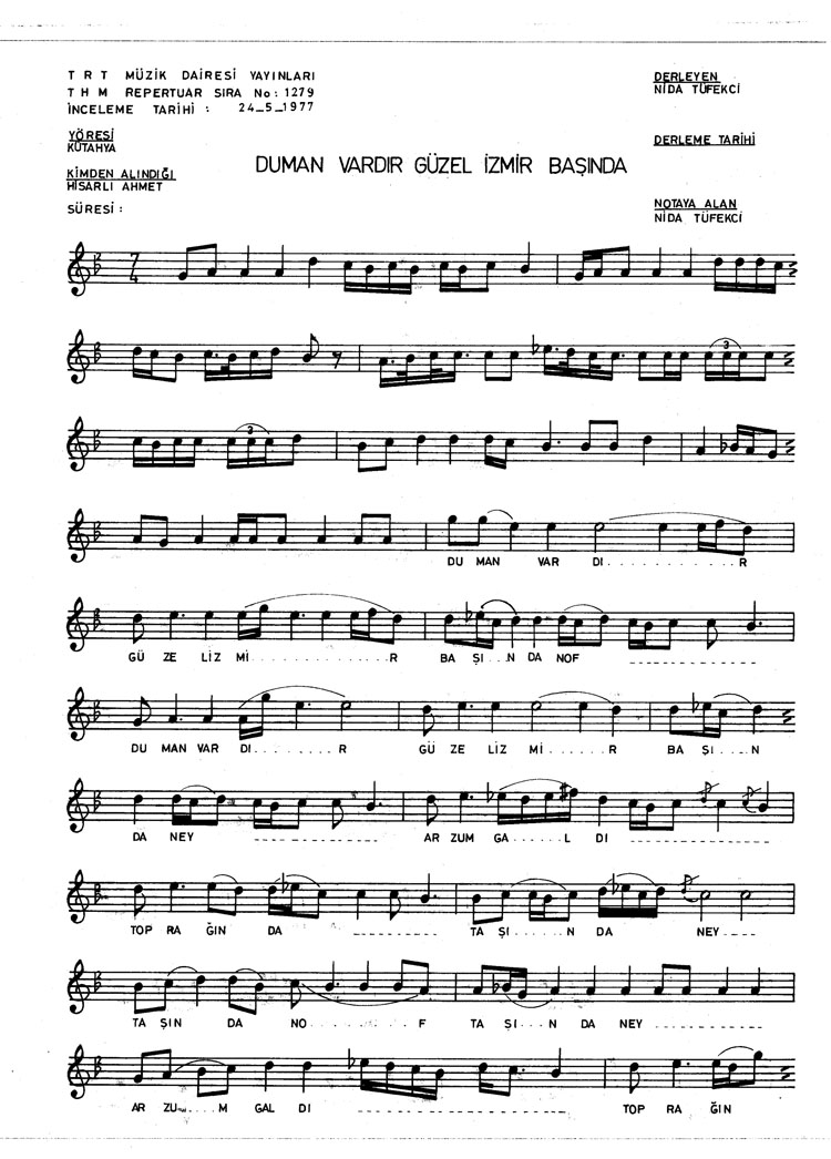 Duman vardır güzel İzmir başında (Rep.No: 1279)