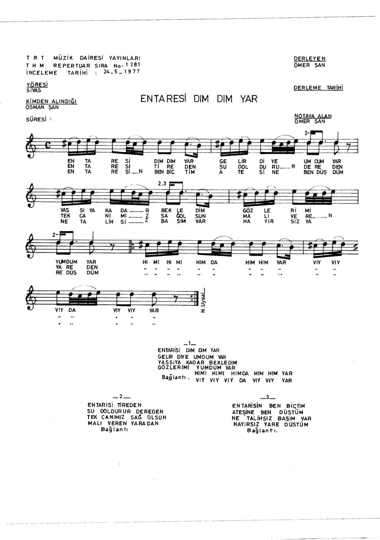 Entarisi dım dım yar (Rep.No: 1281)