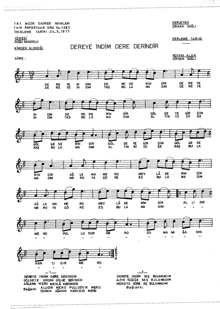 Dereye indim dere derindir (Rep.No: 1282)