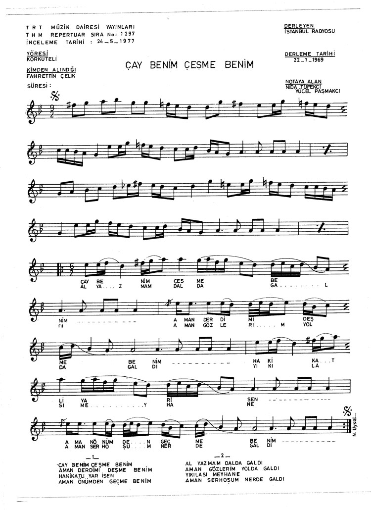 Bu türkünün notasında, sözlerinde veya örnek icrasında bir eksiklik yahut yanlışlık tespit ederseniz, e-mail ile veya WhatsApp hattından bildirim yaparak katkıda bulunabilirsiniz.