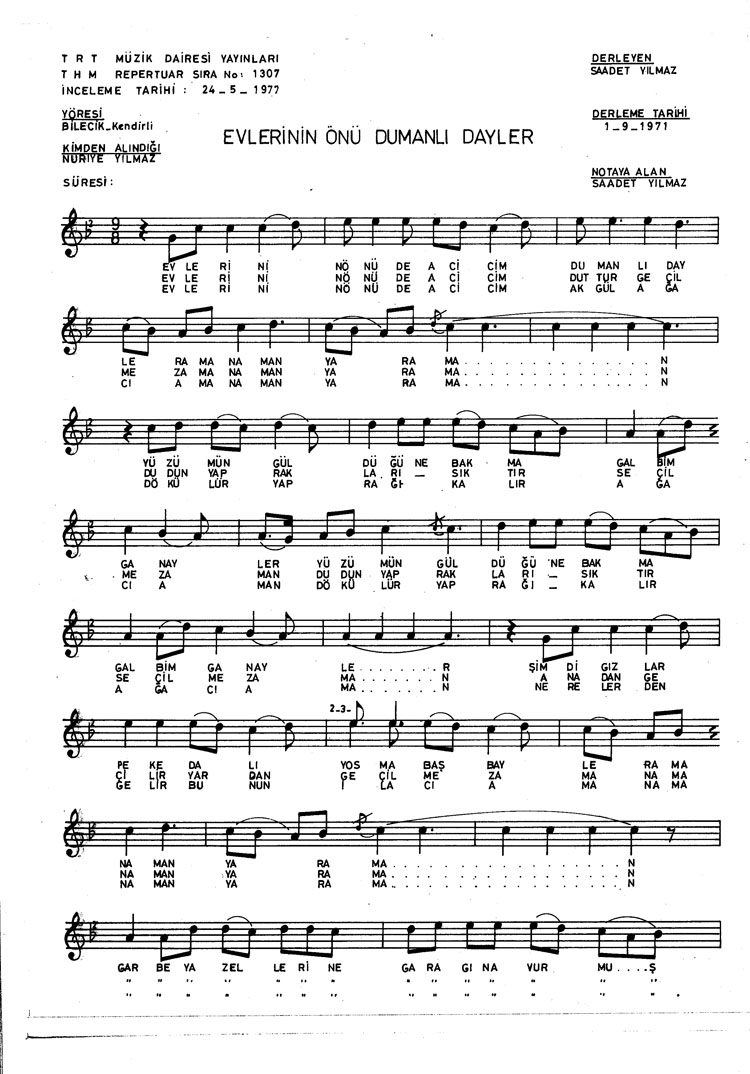 Bu türkünün notasında, sözlerinde veya örnek icrasında bir eksiklik yahut yanlışlık tespit ederseniz, e-mail ile veya WhatsApp hattından bildirim yaparak katkıda bulunabilirsiniz.