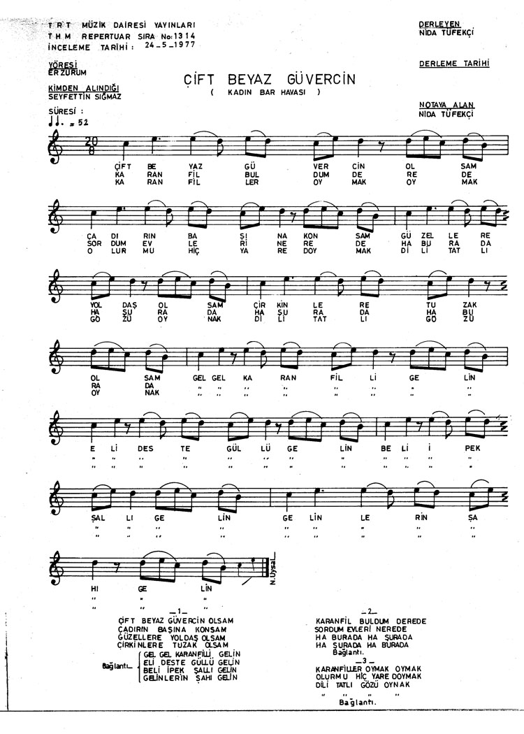 Bu türkünün notasında, sözlerinde veya örnek icrasında bir eksiklik yahut yanlışlık tespit ederseniz, e-mail ile veya WhatsApp hattından bildirim yaparak katkıda bulunabilirsiniz.