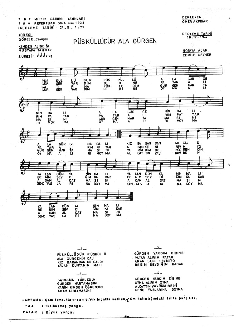Bu türkünün notasında, sözlerinde veya örnek icrasında bir eksiklik yahut yanlışlık tespit ederseniz, e-mail ile veya WhatsApp hattından bildirim yaparak katkıda bulunabilirsiniz.