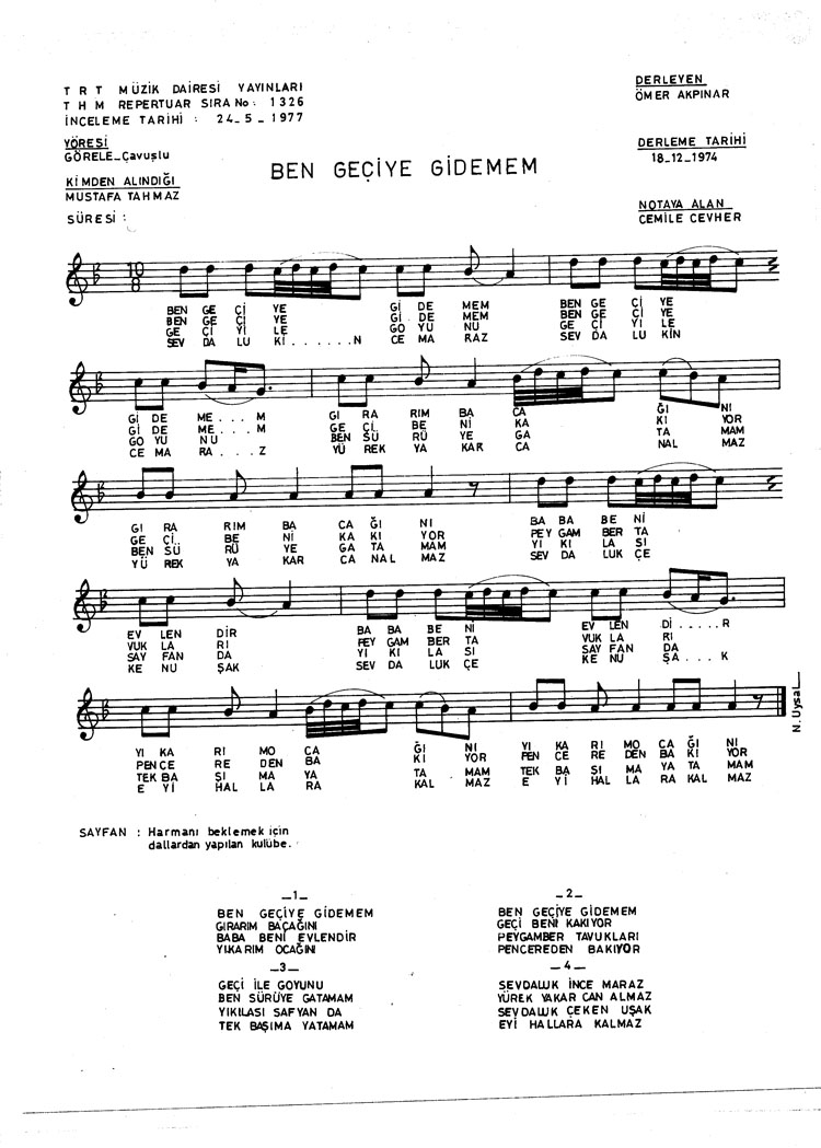 Ben geçiye gidemem (Rep.No: 1326)