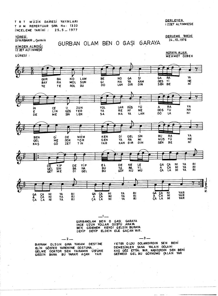 Bu türkünün notasında, sözlerinde veya örnek icrasında bir eksiklik yahut yanlışlık tespit ederseniz, e-mail ile veya WhatsApp hattından bildirim yaparak katkıda bulunabilirsiniz.