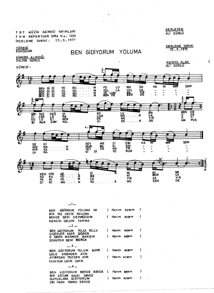 Ben gidiyorum yoluma (Rep.No: 1335)