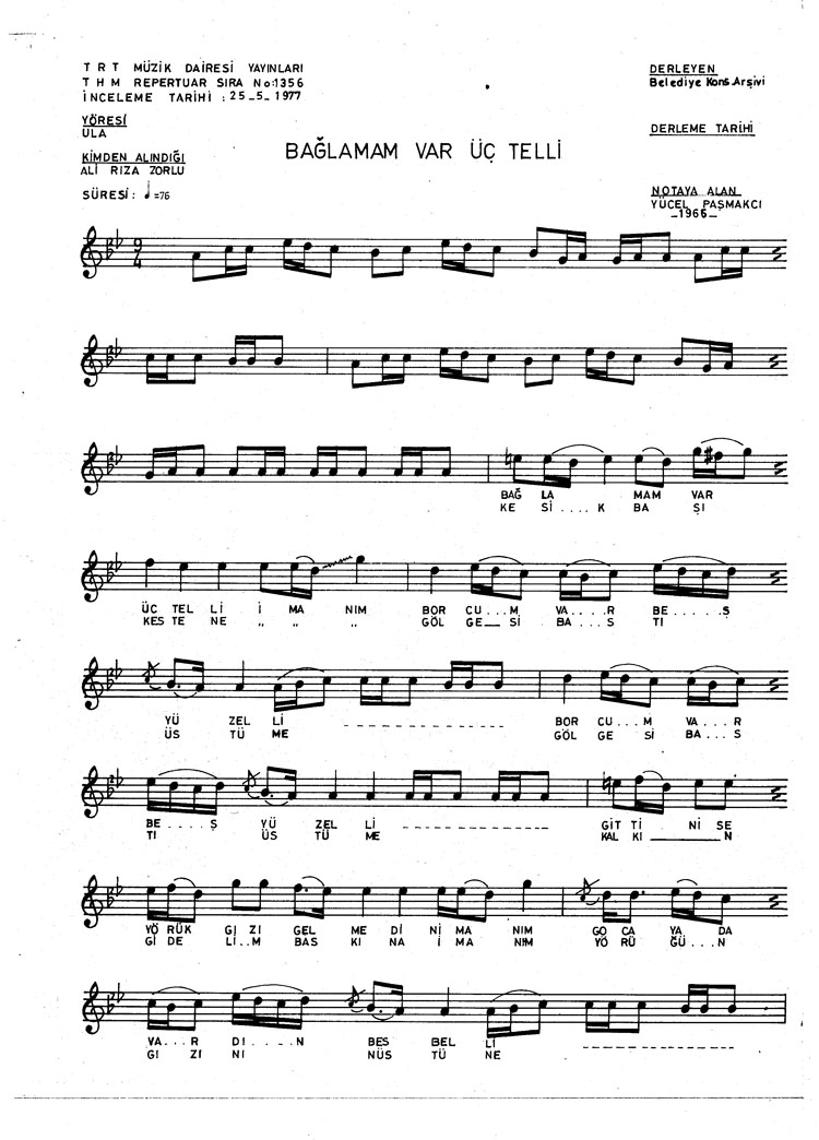 Bağlamam var üç telli (Rep.No: 1356)
