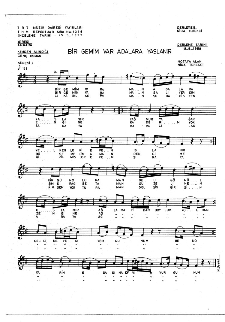 Bir gemim var adalara yaslanır (Rep.No: 1359)