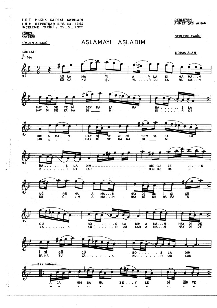 Aşlamayı aşladım (Rep.No: 1364)