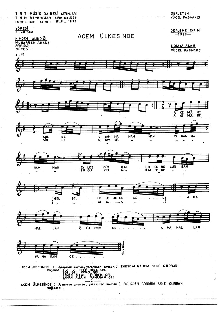 Acem ülkesinde eyleştim galdım (Rep.No: 1370)