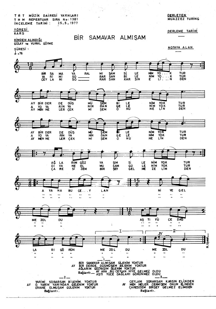 Bir samavar almışam silenim yoktur (Rep.No: 1381)