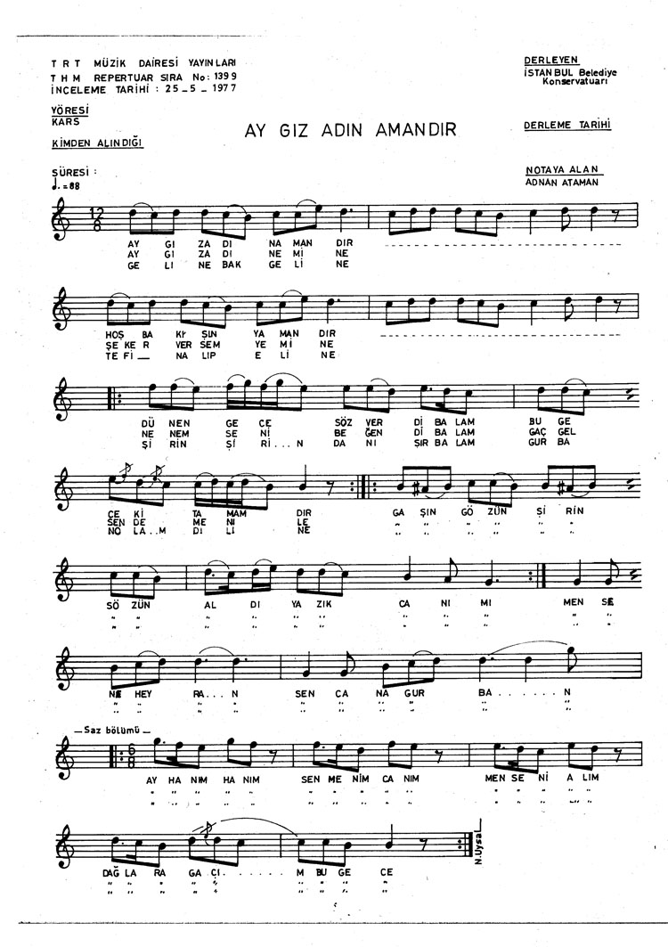 Ay gız adın amandır (Rep.No: 1399)