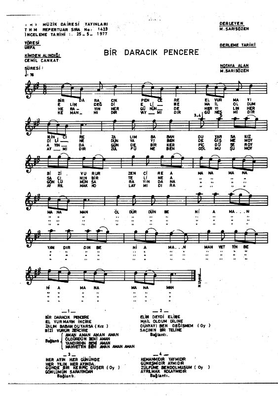 Bu türkünün notasında, sözlerinde veya örnek icrasında bir eksiklik yahut yanlışlık tespit ederseniz, e-mail ile veya WhatsApp hattından bildirim yaparak katkıda bulunabilirsiniz.