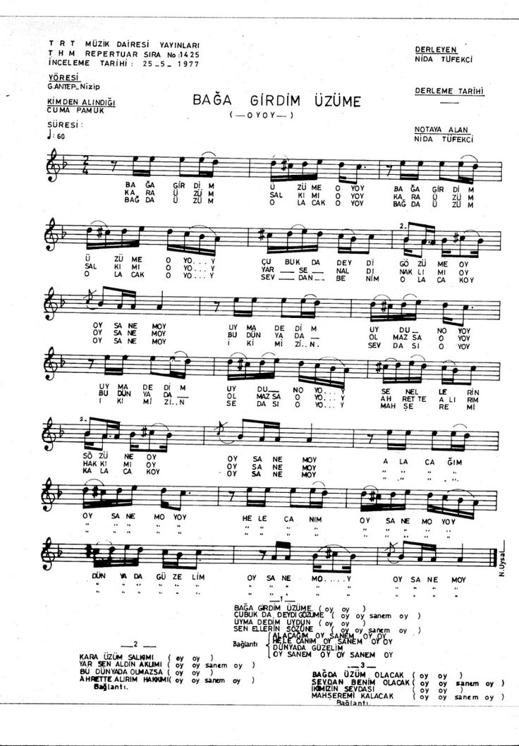 Bu türkünün notasında, sözlerinde veya örnek icrasında bir eksiklik yahut yanlışlık tespit ederseniz, e-mail ile veya WhatsApp hattından bildirim yaparak katkıda bulunabilirsiniz.