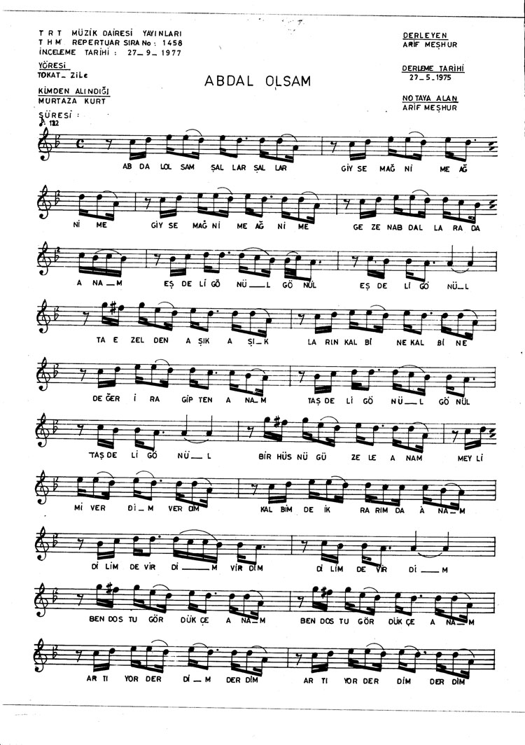 Abdal olsam şallar giysem aynime (Rep.No: 1458)