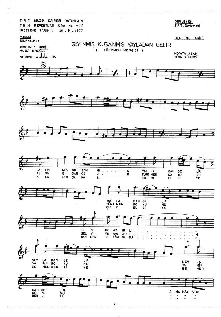 Geyinmiş kuşanmış yayladan gelir (Rep.No: 1472)