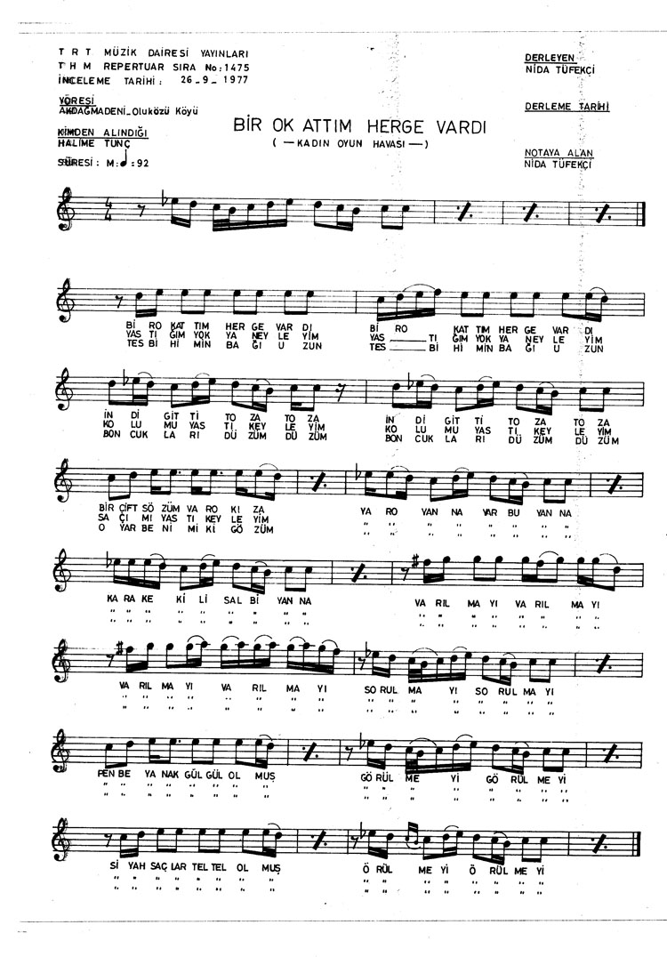 Bir ok attım herge vardı (Rep.No: 1475)