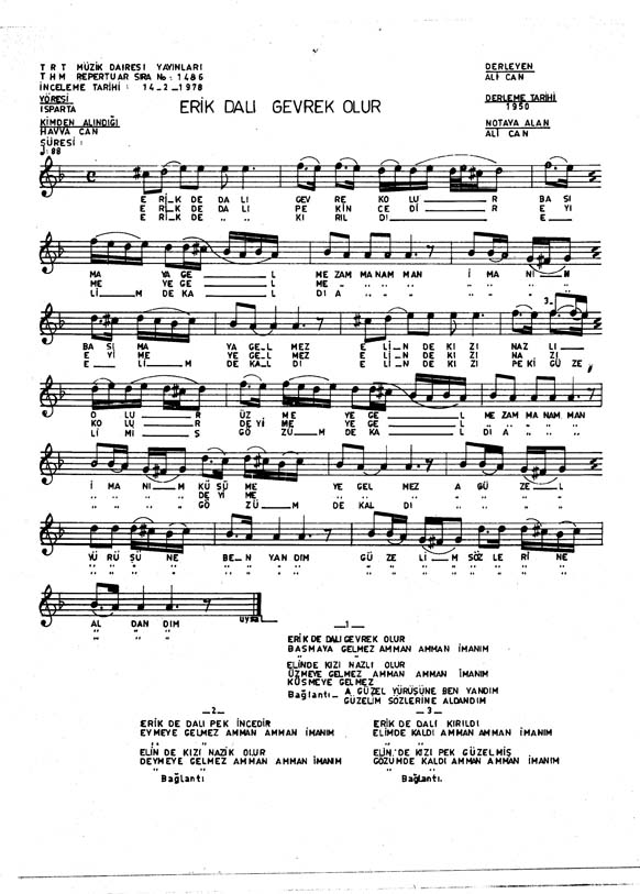 Bu türkünün notasında, sözlerinde veya örnek icrasında bir eksiklik yahut yanlışlık tespit ederseniz, e-mail ile veya WhatsApp hattından bildirim yaparak katkıda bulunabilirsiniz.