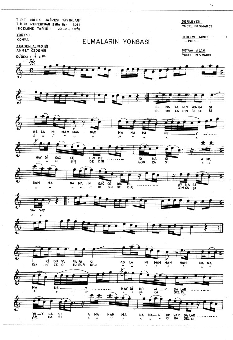 Bu türkünün notasında, sözlerinde veya örnek icrasında bir eksiklik yahut yanlışlık tespit ederseniz, e-mail ile veya WhatsApp hattından bildirim yaparak katkıda bulunabilirsiniz.
