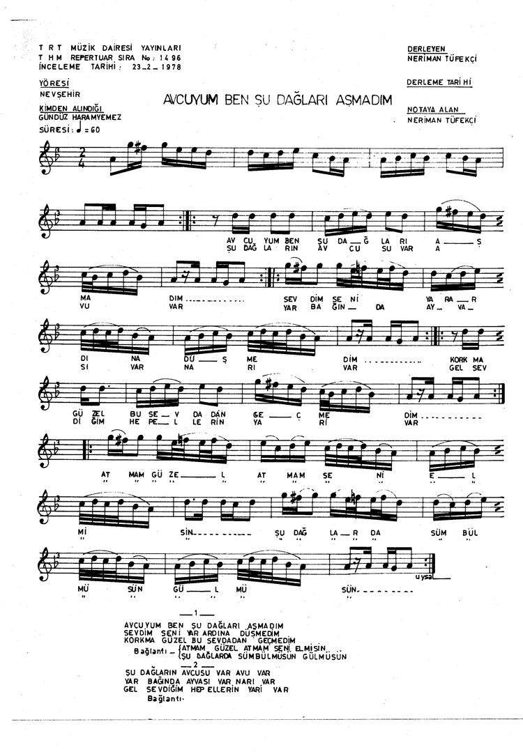 Avcuyum ben şu dağları aşmadım (Rep.No: 1496)