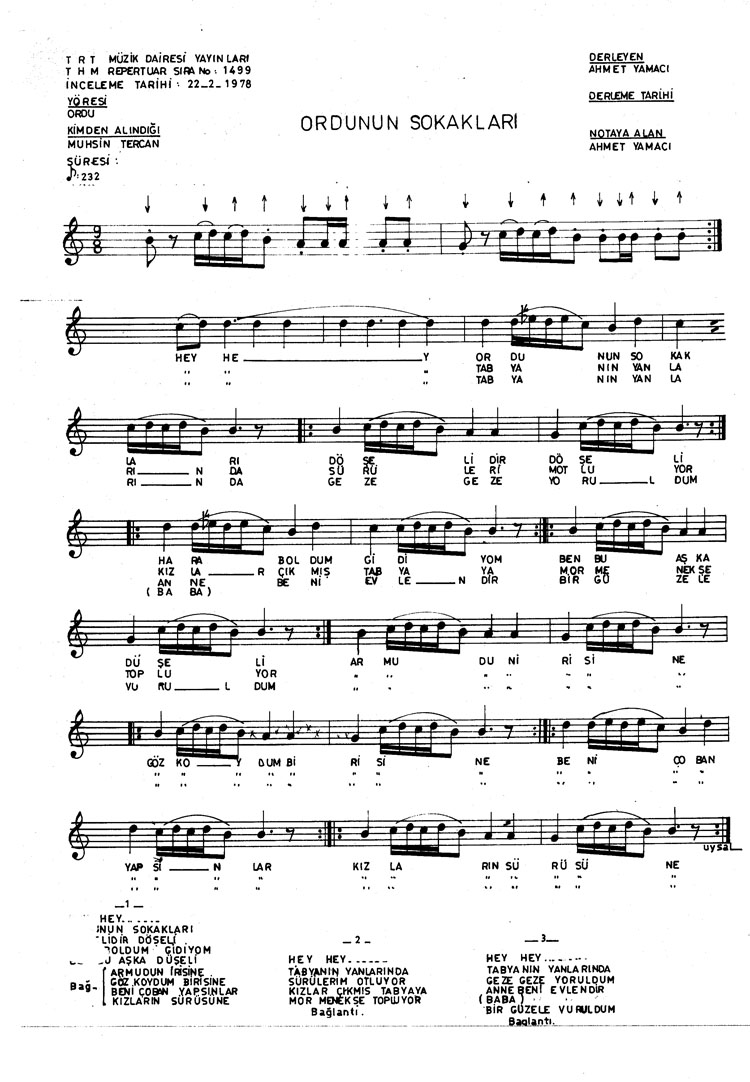 Bu türkünün notasında, sözlerinde veya örnek icrasında bir eksiklik yahut yanlışlık tespit ederseniz, e-mail ile veya WhatsApp hattından bildirim yaparak katkıda bulunabilirsiniz.