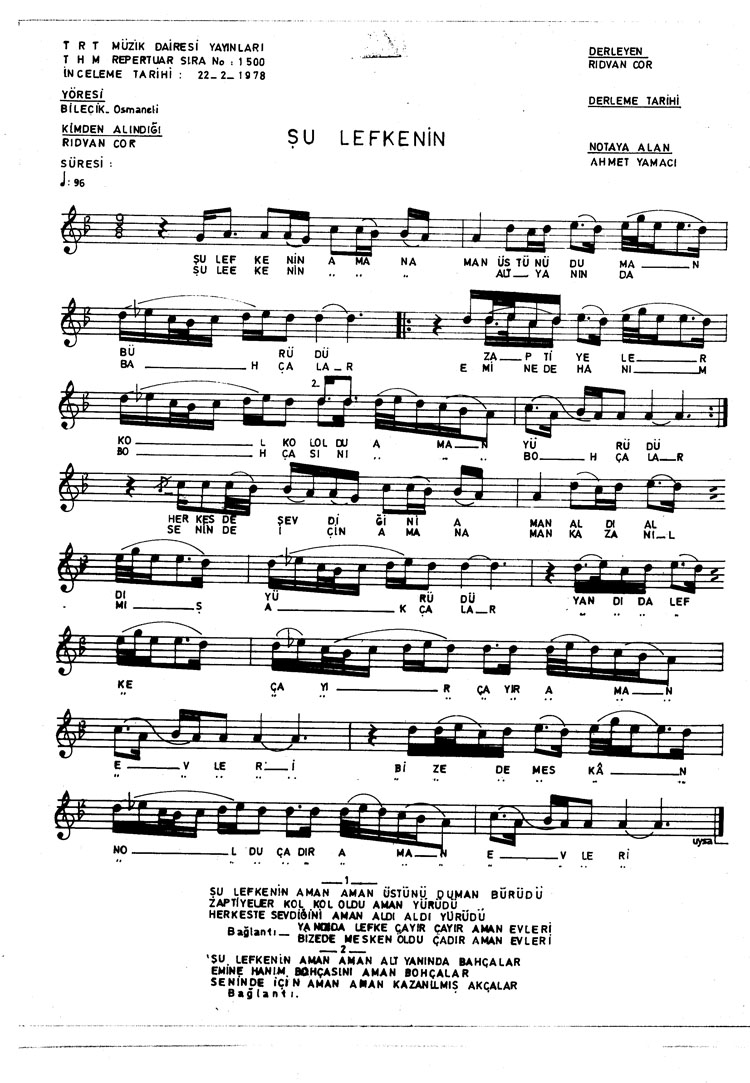 Bu türkünün notasında, sözlerinde veya örnek icrasında bir eksiklik yahut yanlışlık tespit ederseniz, e-mail ile veya WhatsApp hattından bildirim yaparak katkıda bulunabilirsiniz.