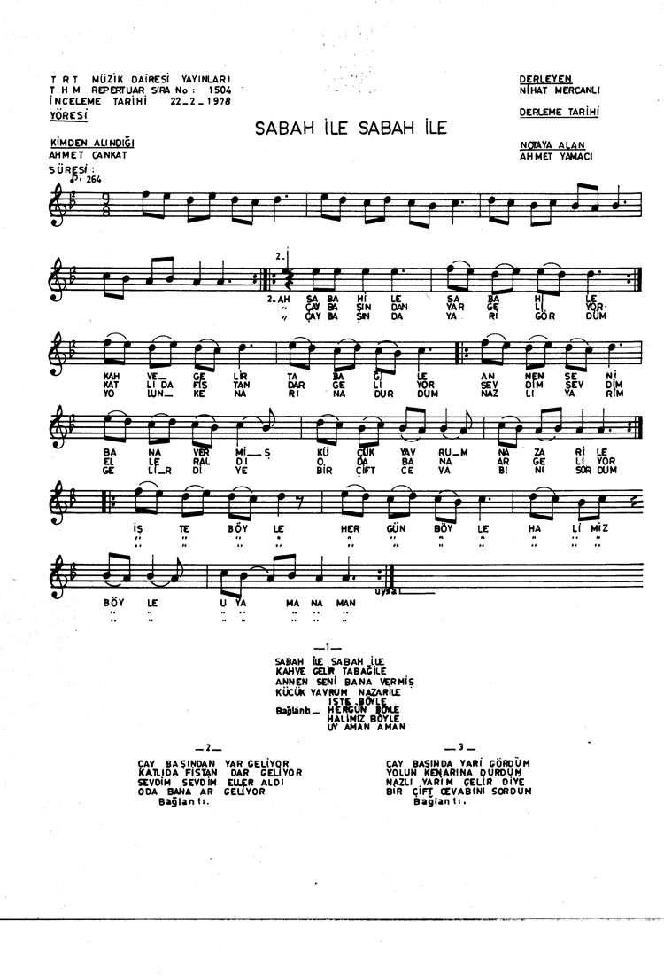 Bu türkünün notasında, sözlerinde veya örnek icrasında bir eksiklik yahut yanlışlık tespit ederseniz, e-mail ile veya WhatsApp hattından bildirim yaparak katkıda bulunabilirsiniz.