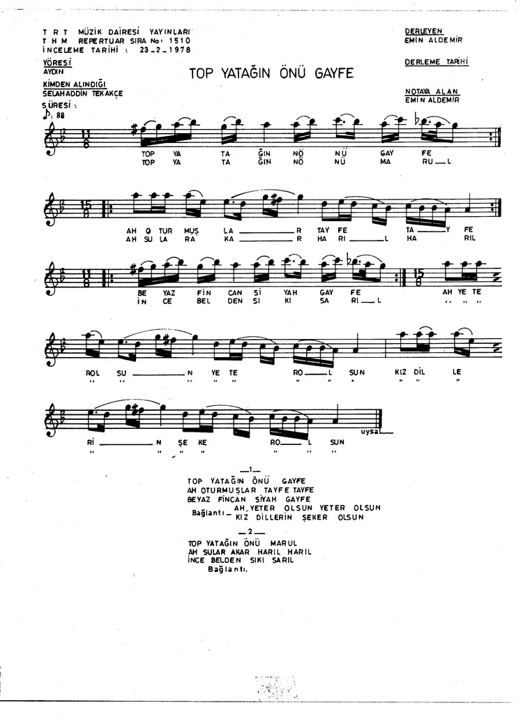 Bu türkünün notasında, sözlerinde veya örnek icrasında bir eksiklik yahut yanlışlık tespit ederseniz, e-mail ile veya WhatsApp hattından bildirim yaparak katkıda bulunabilirsiniz.