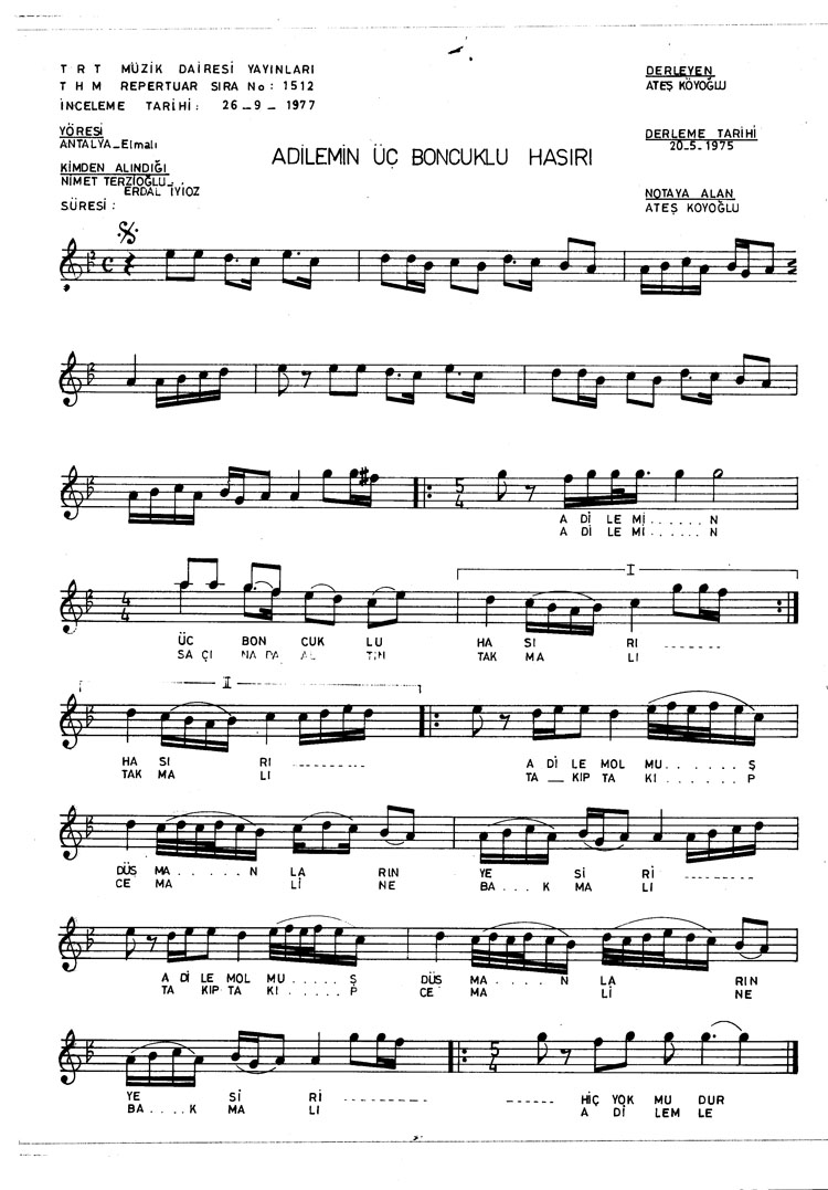 Bu türkünün notasında, sözlerinde veya örnek icrasında bir eksiklik yahut yanlışlık tespit ederseniz, e-mail ile veya WhatsApp hattından bildirim yaparak katkıda bulunabilirsiniz.