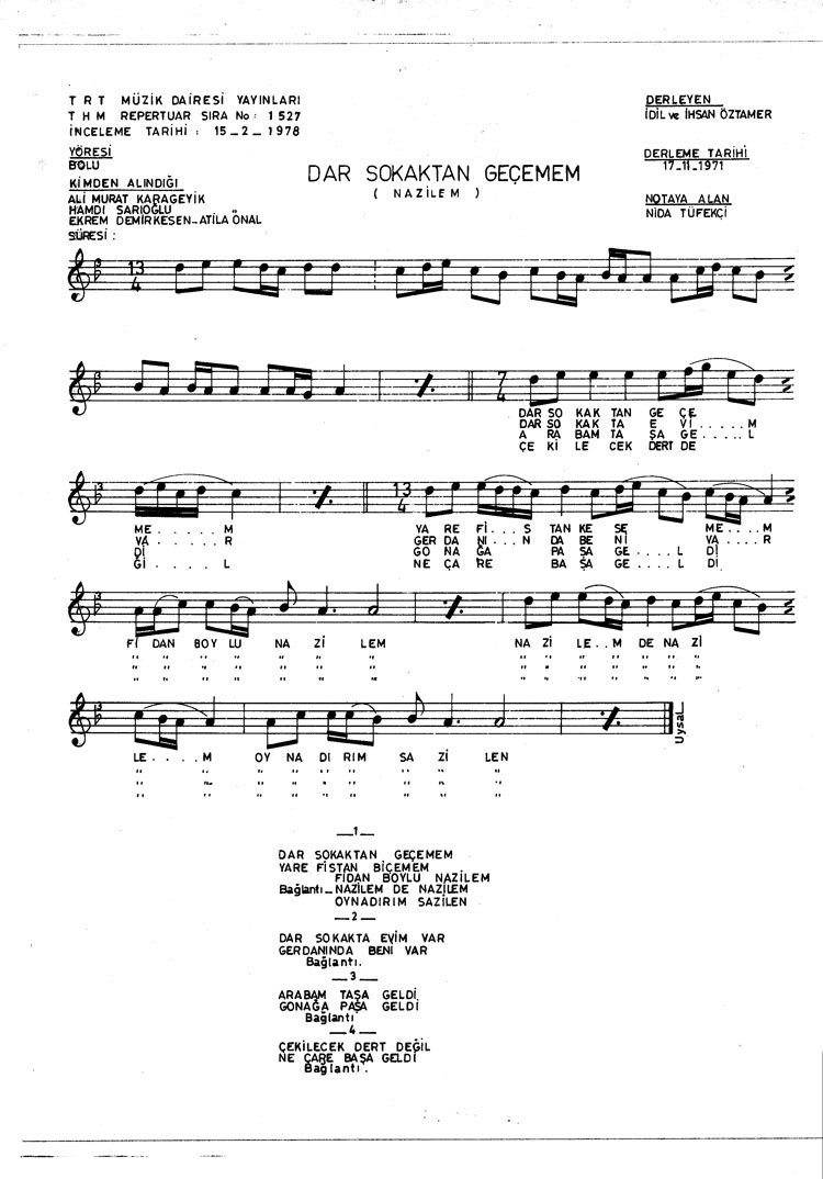 Dar sokaktan geçemem (Rep.No: 1527)