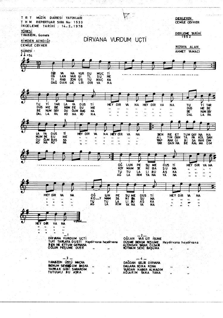 Bu türkünün notasında, sözlerinde veya örnek icrasında bir eksiklik yahut yanlışlık tespit ederseniz, e-mail ile veya WhatsApp hattından bildirim yaparak katkıda bulunabilirsiniz.