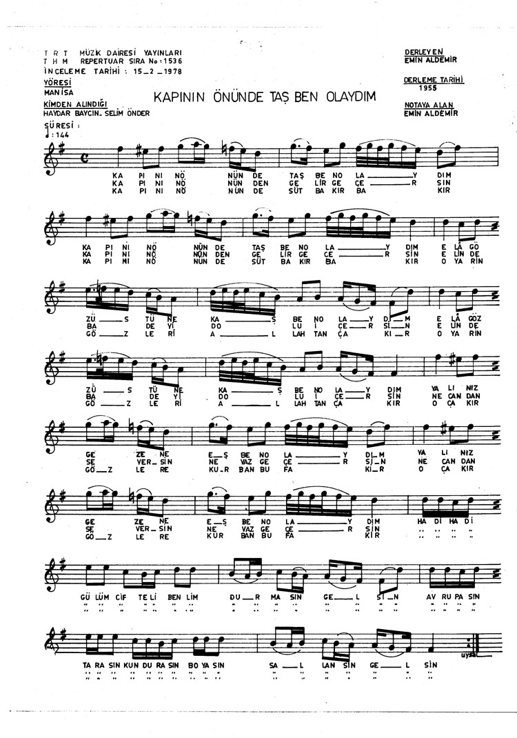 Kapının önünde taş ben olaydım (Rep.No: 1536)