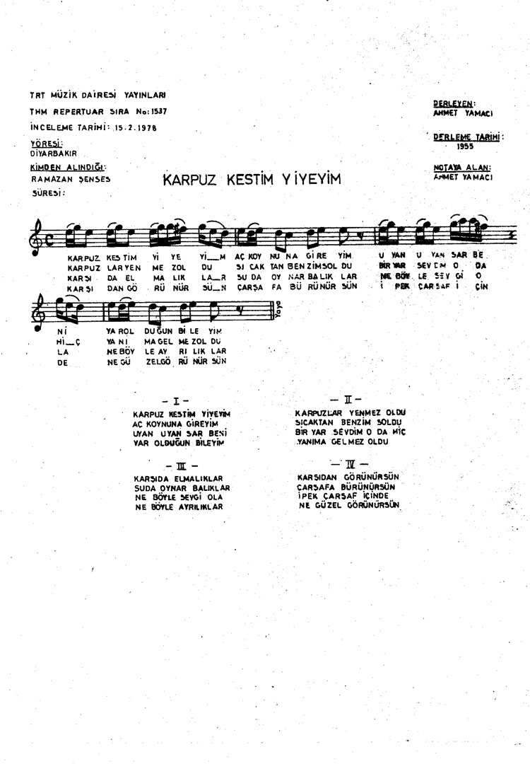 Karpuz kestim yiyeyim (Rep.No: 1537)