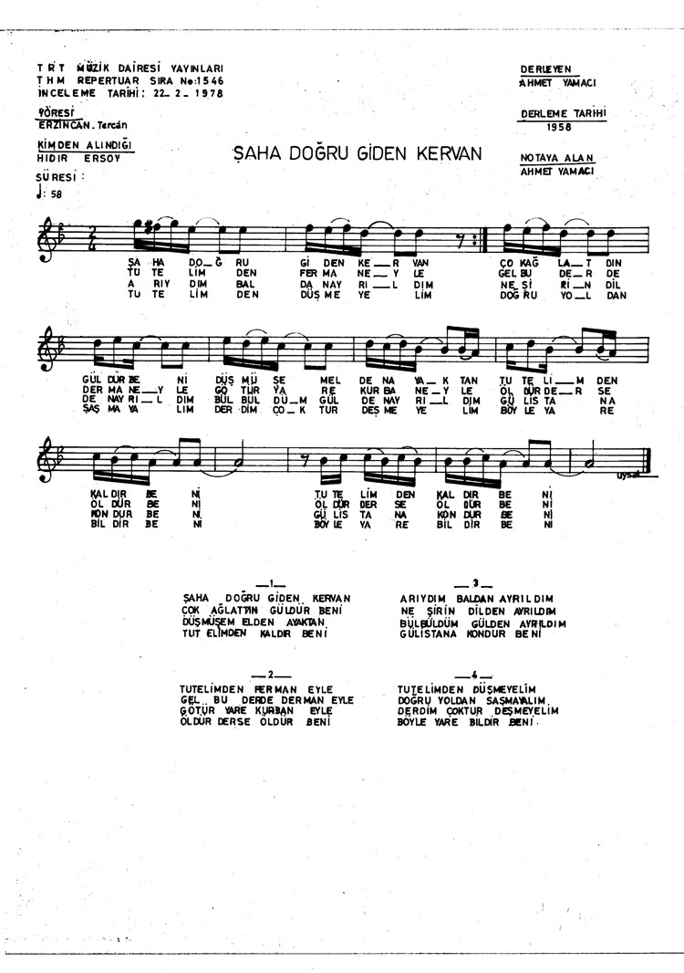 Bu türkünün notasında, sözlerinde veya örnek icrasında bir eksiklik yahut yanlışlık tespit ederseniz, e-mail ile veya WhatsApp hattından bildirim yaparak katkıda bulunabilirsiniz.