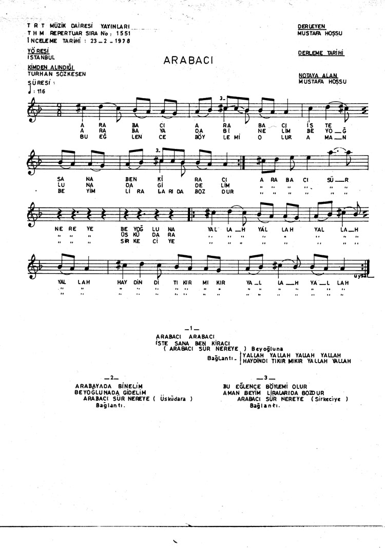 Arabacı arabacı işte sana ben kiracı (Rep.No: 1551)
