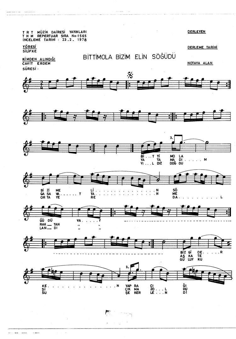 Bitti m´ola bizim elin söğüdü (Rep.No: 1565)