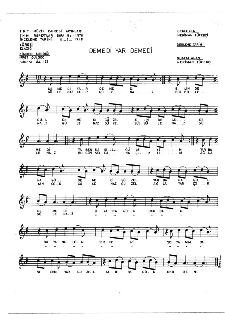 Bu türkünün notasında, sözlerinde veya örnek icrasında bir eksiklik yahut yanlışlık tespit ederseniz, e-mail ile veya WhatsApp hattından bildirim yaparak katkıda bulunabilirsiniz.