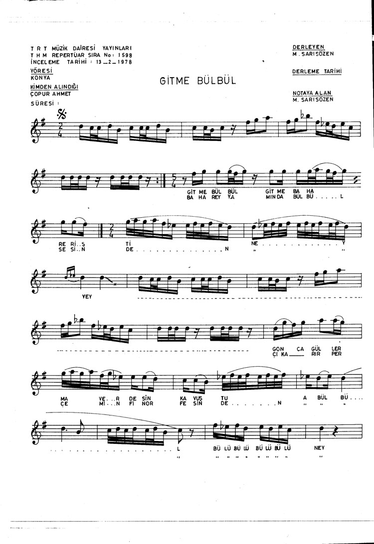 Gitme bülbül gitme bahar erişti (Rep.No: 1598)