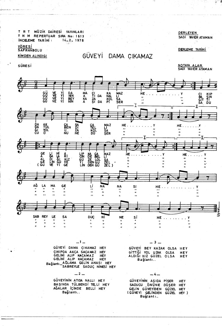 Bu türkünün notasında, sözlerinde veya örnek icrasında bir eksiklik yahut yanlışlık tespit ederseniz, e-mail ile veya WhatsApp hattından bildirim yaparak katkıda bulunabilirsiniz.