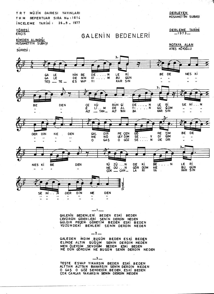 Bu türkünün notasında, sözlerinde veya örnek icrasında bir eksiklik yahut yanlışlık tespit ederseniz, e-mail ile veya WhatsApp hattından bildirim yaparak katkıda bulunabilirsiniz.