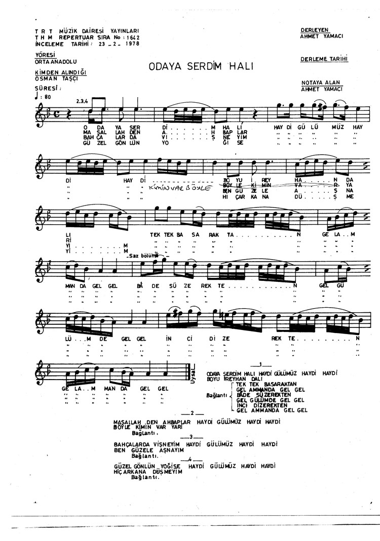 Bu türkünün notasında, sözlerinde veya örnek icrasında bir eksiklik yahut yanlışlık tespit ederseniz, e-mail ile veya WhatsApp hattından bildirim yaparak katkıda bulunabilirsiniz.