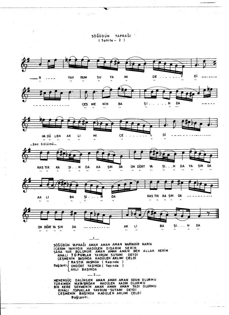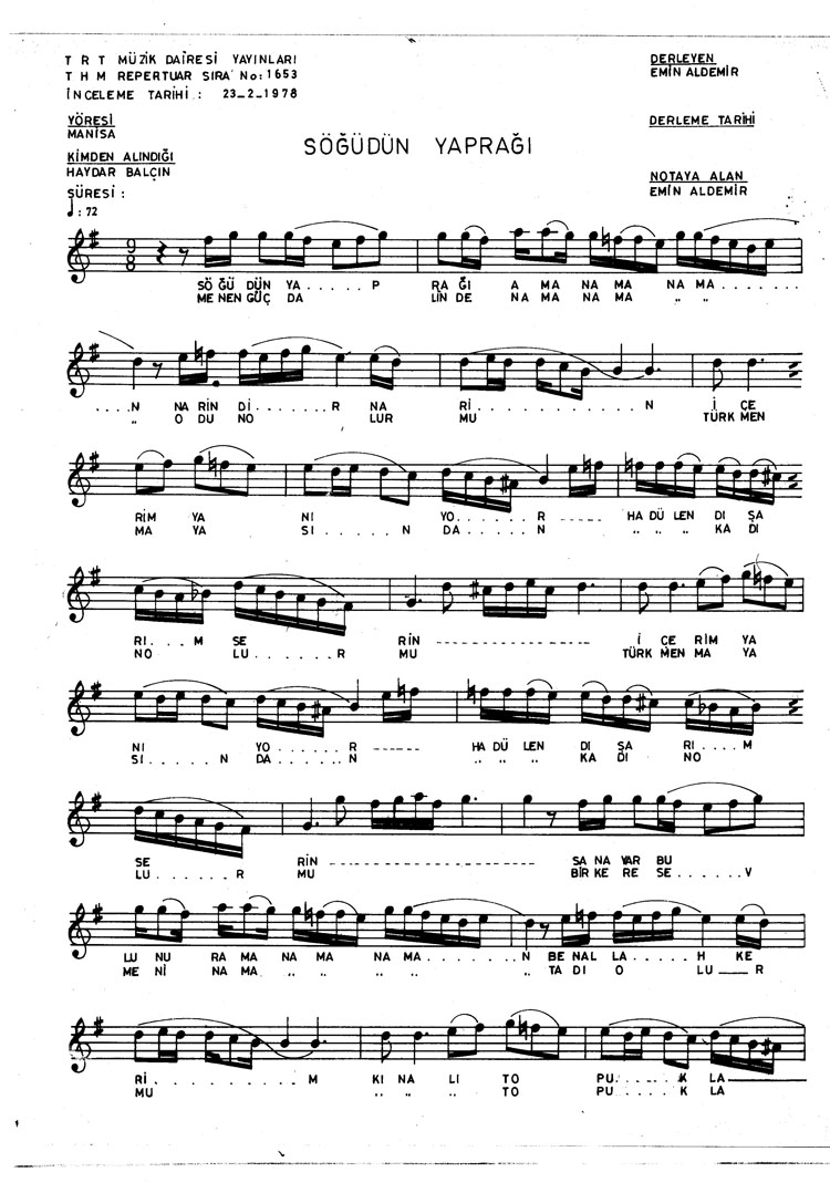 Bu türkünün notasında, sözlerinde veya örnek icrasında bir eksiklik yahut yanlışlık tespit ederseniz, e-mail ile veya WhatsApp hattından bildirim yaparak katkıda bulunabilirsiniz.