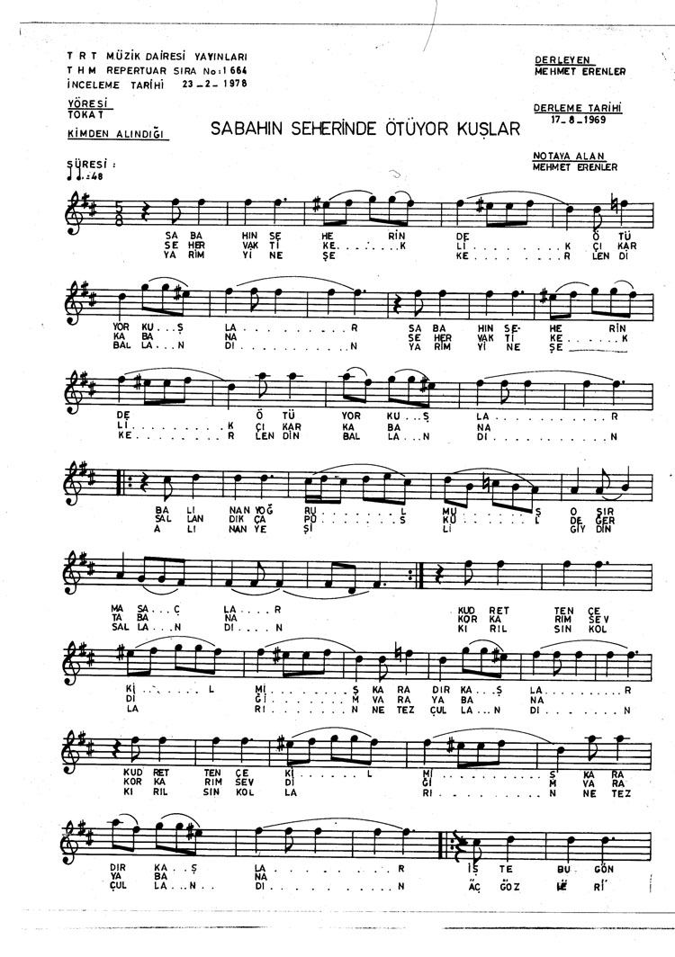 Sabahın seherinde ötüyor kuşlar (Rep.No: 1664)