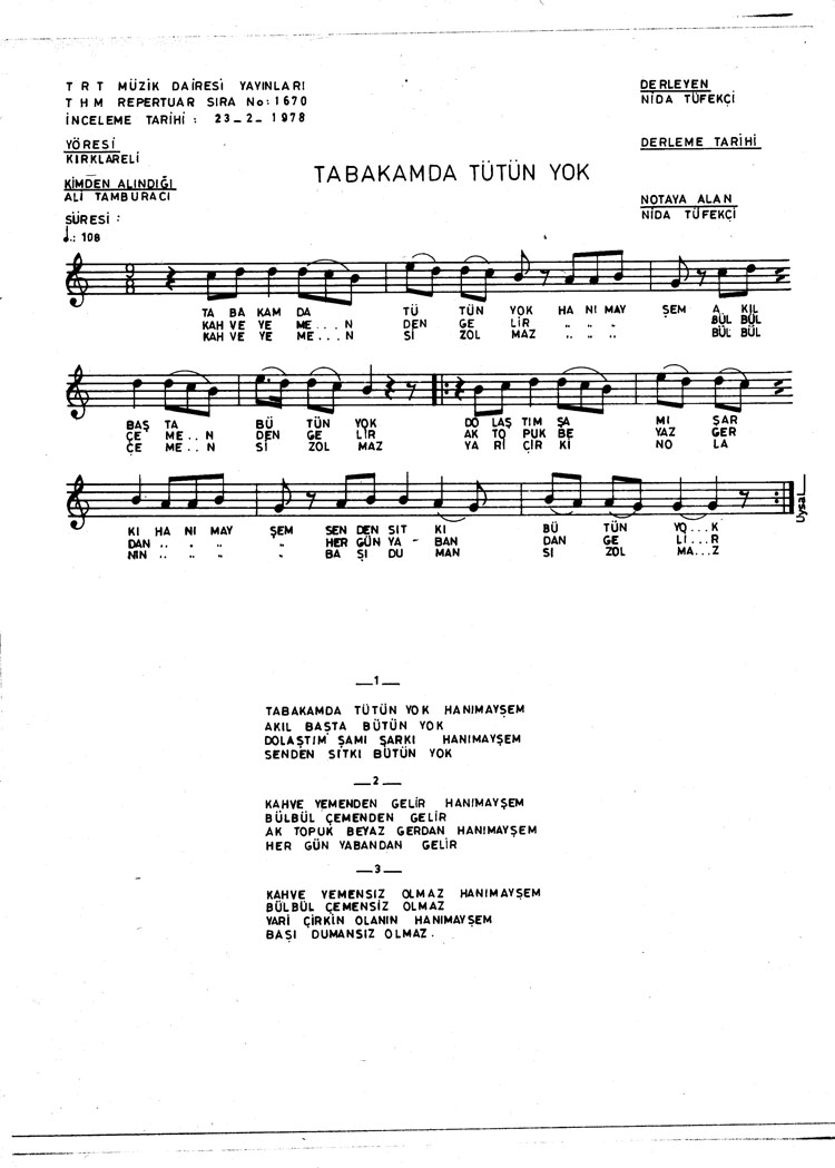 Bu türkünün notasında, sözlerinde veya örnek icrasında bir eksiklik yahut yanlışlık tespit ederseniz, e-mail ile veya WhatsApp hattından bildirim yaparak katkıda bulunabilirsiniz.