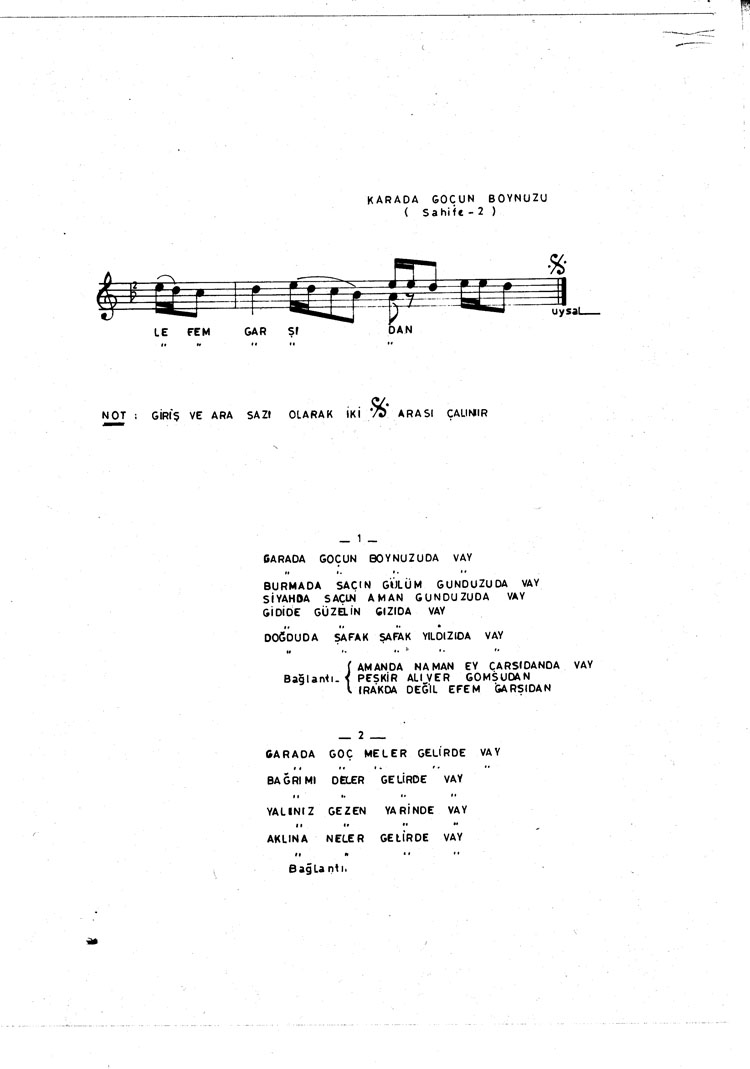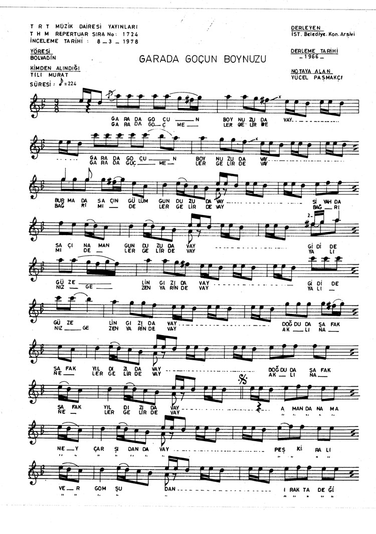 Bu türkünün notasında, sözlerinde veya örnek icrasında bir eksiklik yahut yanlışlık tespit ederseniz, e-mail ile veya WhatsApp hattından bildirim yaparak katkıda bulunabilirsiniz.